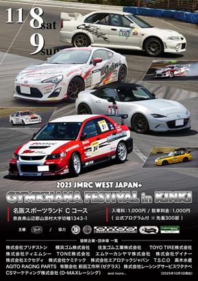 各主催者からのイベント案内を掲載します 注意:マイナ免許証の方は、「マイナ免許証読み取りアプリ」を各自で準備して大会当日の受付で提示してください。 詳細は、「モータースポーツ競技会における「マイナ免許証」の確認について(JAF-HP)」を参照してください。 注意:競技ライセンスを更新時にJAF会員の有効期限が切れているとライセンスの更新がすることができません。 詳細は、「許可証(ライセンス)とJAF個人会員の有効について(JAF-HP)」を参照してください。 ![]() 2025年JAFカップオールジャパンジムカーナ/JMRC全国オールスタージムカーナin関東 開催日程:2025年10月25日(土)〜10月26日(日) 2日間 オーガナイザー チームオートスポーツ下越(TASK) ザ・マーキングチョーカーズ(THE・MC) 競技会開催場所:スピードパーク新潟(SPN) 参加受付期間 受付開始 2025年10月1日(水) 締切日 2025年10月10日(金)必着 詳細は、大会HPおよび特別規則書を参照してください。 ホーム ページURL(HMTL) 特別規則書(PDF) 参加申込書&インフォメーション(土曜日公開練習参加) および金曜日練習会の参加申込方法が大会HPに掲載されています。 ![]() 詳細は、大会HPを参照してください。 (2025.09.27) ![]() ![]() 2025JMRC西日本ジムカーナフェスティバル in 近畿 開催日程: 2025年11月8日(土)~9日(日) 2日間 主 催:淀レーシングクラブ 場 所:名阪スポーツランド C コース 受付期間:10 月 1 日(水) ~ 締 切 日: 10 月 10 日(金)必着 特別規則書(PDF) 提出書類:参加申込書,車両改造申告書,出場選手カード,参加申込明細書 注意:前設定ファイル(明細書)の計算が間違っているファイルがあるようです。 最新のものを使用していただくため、大会ホームページから参照してください。 大会ホームページ(HTML) ![]() 申込書の個人会員番号の記入欄について質問がありましたので、以下ご連絡いたします。 JMRC近畿ではJMRC個人会員番号があり、参加申込書にその番号を記載するようですが、 JMRC中部で、そのような個人会員番号はありません。 そのため記載不要で問題ありません。 JMRC中部のクラブに所属しておられる場合は、共済会の保険も有効です。 また、有効性の証明はライセンスの裏にクラブ印があればOKです。 よろしくお願いいたします。 (2025.10.02) 11月7日(金):名阪スポーツランドCコース 西フェス前日練習会 金曜日練習会案内申込書(PDF) 金曜日練習会案内申込書(WORD) 申込先:JMRC西日本ジムカーナフェスティバルの 申し込み時に現金書留・振込にてお申し込みください。 --------------------------------- JMRC中部ジムカーナ選手権第7戦 開催日;2025年 8月31日(日) 会場 ;イオックスアローザスポーツランド 主催 ;チーム・オブ・モーターボーイズ(TOMBO) 競技結果(PDF) ![]() ポイント表(PDF) ![]() (2025.09.01) ---------------------------- JMRC中部ジムカーナ東海シリーズ第5戦 開催日;2025年 6月29日(日) 会場 ;キョウセイドライバーランド 主催 :チーム エムアイ(M-I) 競技結果(PDF) ポイント表(PDF) 最新情報はM-I_HPを確認ください。 (2025.06.29) JMRC中部ジムカーナ東海シリーズ第6戦 開催日;2025年10月12日(日) 会場 ;美浜サーキット・クニモト 主催 ;パームタウン(PALMTOWN) 申込み期間:9月12日から10月2日まで 公式通知No.1(役員&タイスケ)(PDF) Communication No.2(参加受理内容)(PDF) ![]() Communication No.3(暫定エントリーリスト)(PDF) ![]() Communication No.4(会場案内図)(PDF) ![]() Communication No.5(パドック図)(PDF) ![]() 最新情報はPALMTOWN-blogを確認ください。 (2025.10.07)