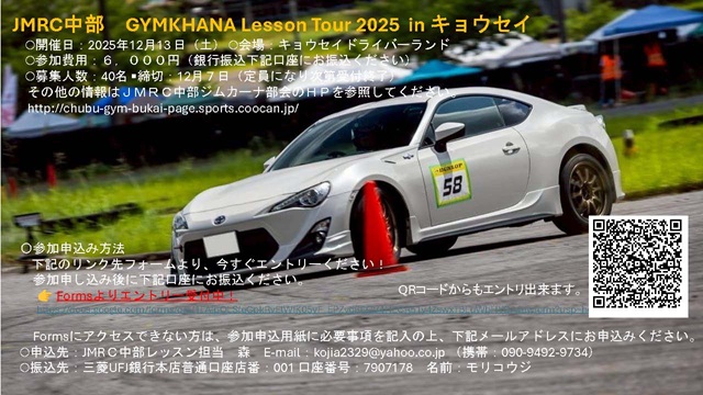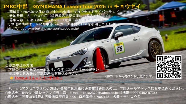 ●JMRC中部 GYMKHANA Lesson Tour 2025 in キョウセイ参加者募集のご案内